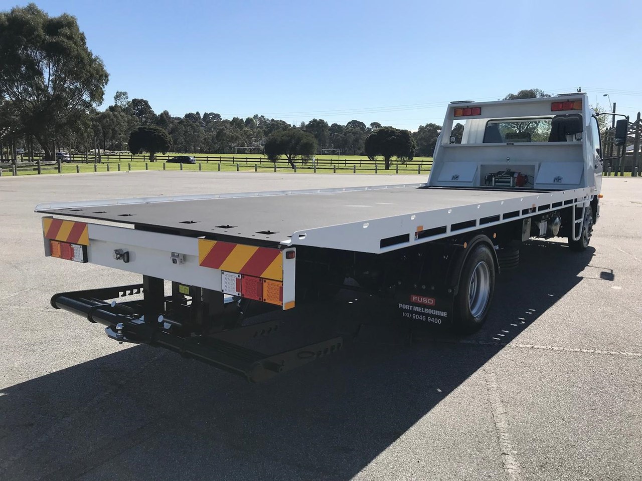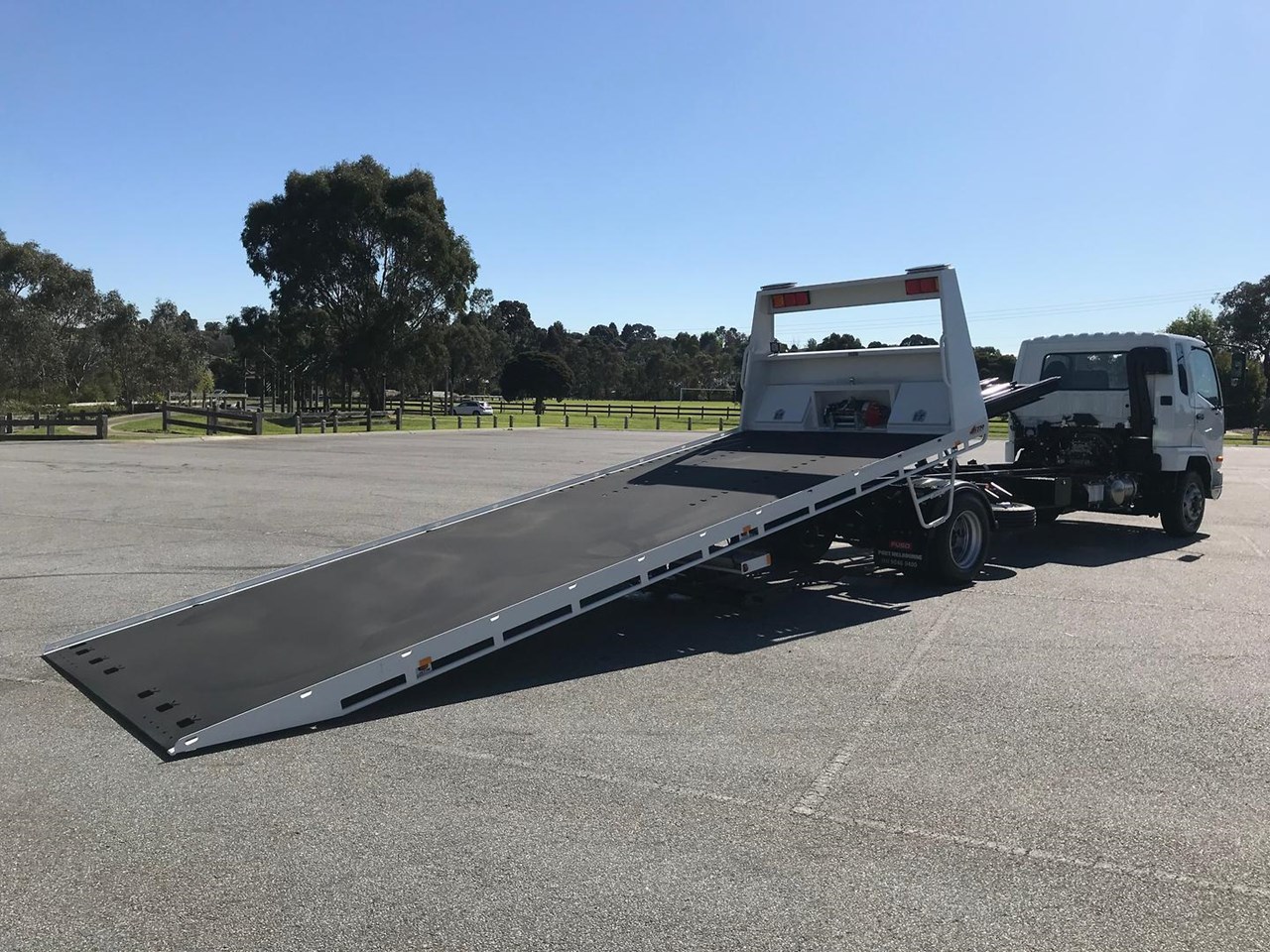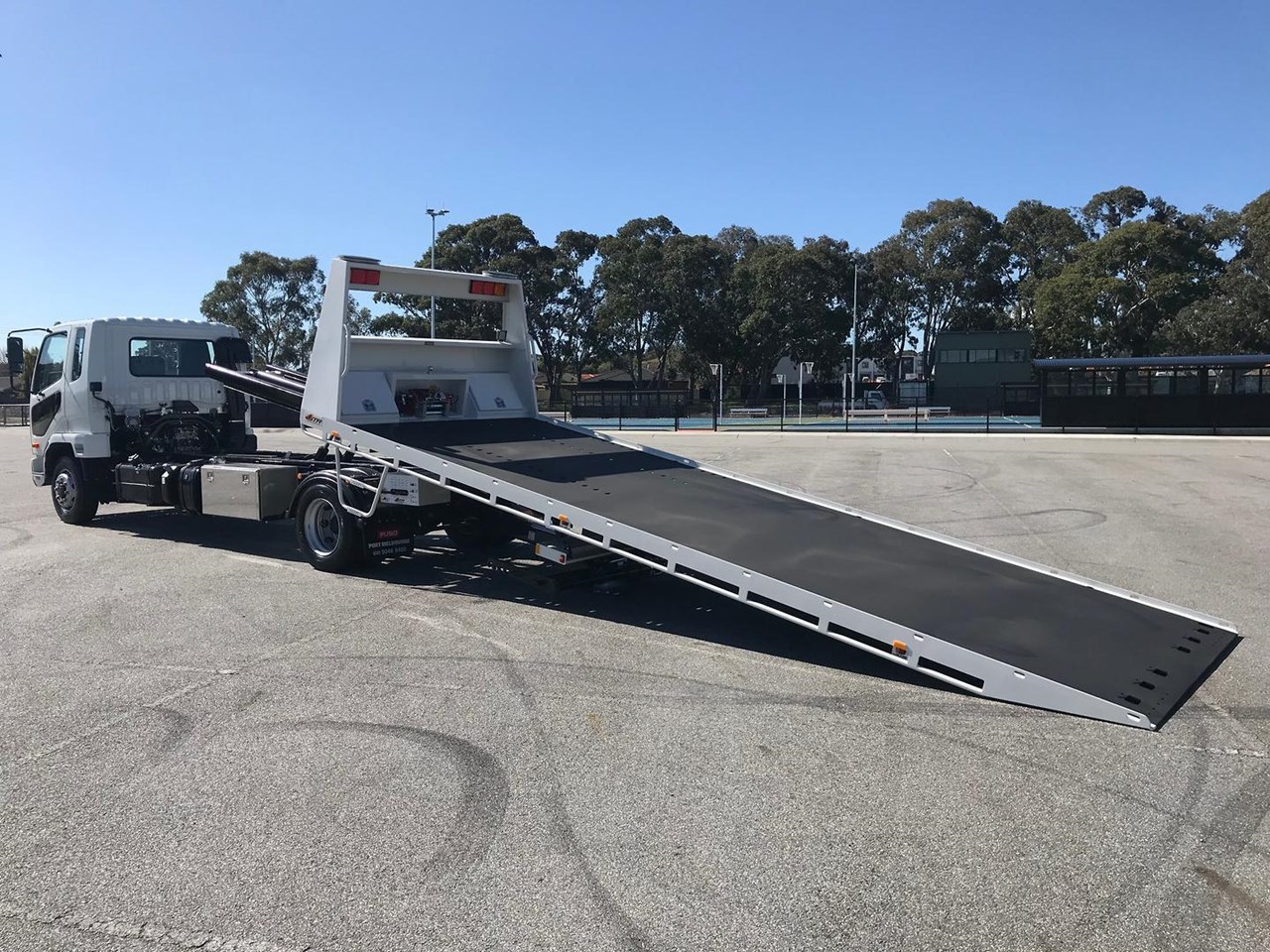 The Tilt tray is built by one of or local builders, ATM (Australian Trailer Manufactures) the tray has 7050mm of usable deck, 5mm hardox floor, 12 000lbs hydraulic winch with a 14mm 25mt cable, quick lash front and rear systems, ATM second car underlift, 2x headboard and 1x 1000mm long chassis mounted toolboxes, work lights and twin mini led bars on head board.