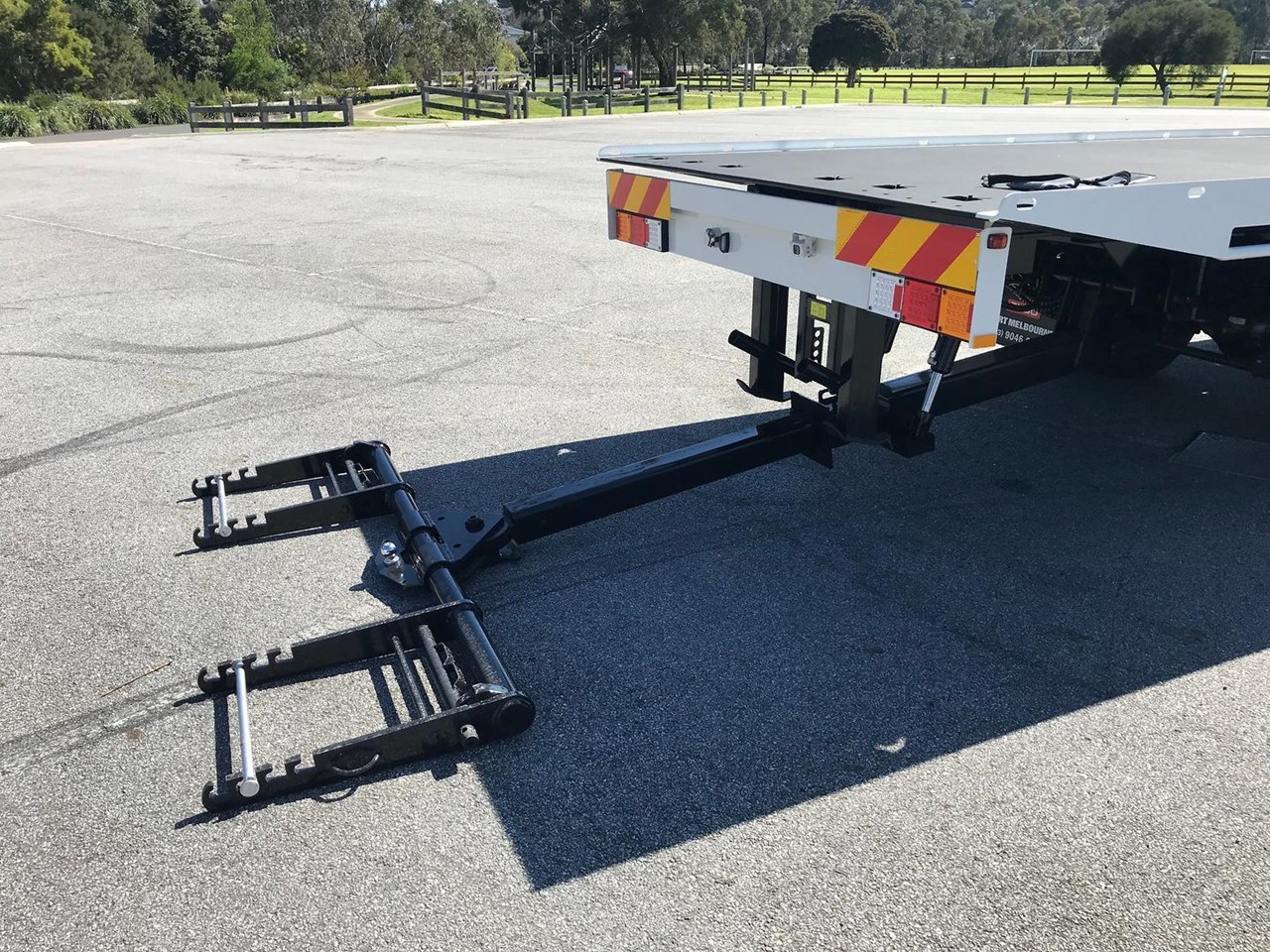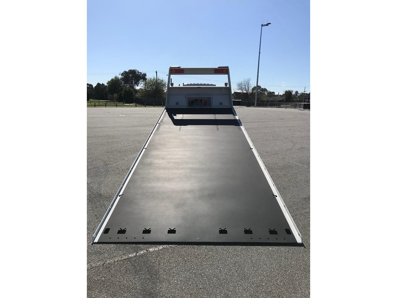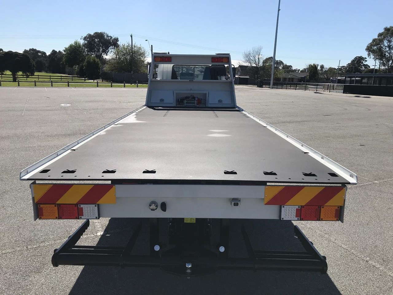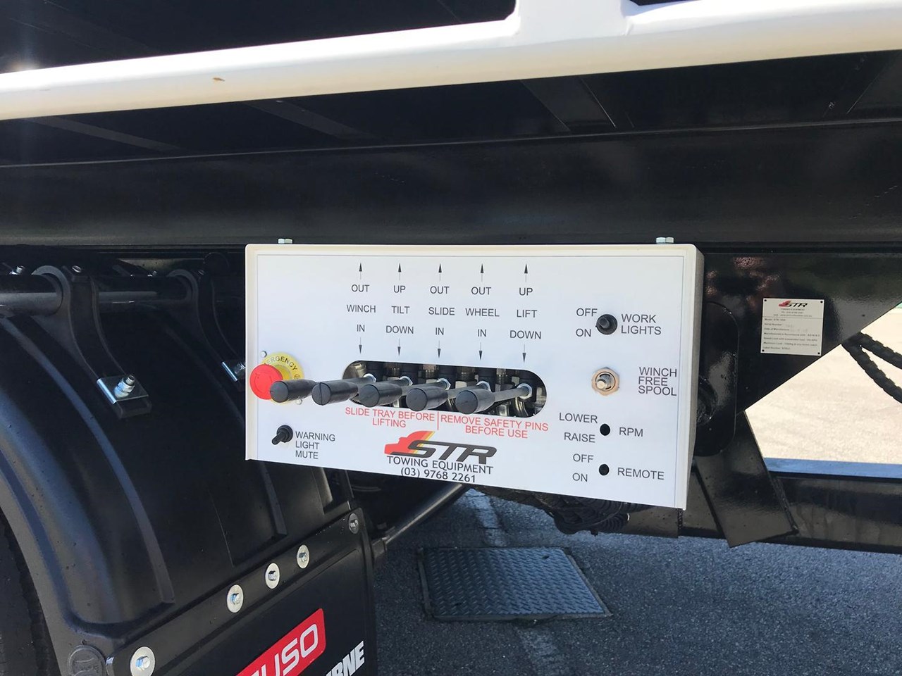 The Tilt tray is built by one of or local builders, ATM (Australian Trailer Manufactures) the tray has 7050mm of usable deck, 5mm hardox floor, 12 000lbs hydraulic winch with a 14mm 25mt cable, quick lash front and rear systems, ATM second car underlift, 2x headboard and 1x 1000mm long chassis mounted toolboxes, work lights and twin mini led bars on head board.