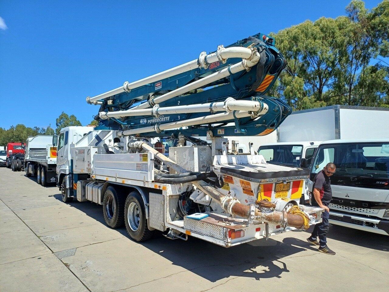 2010 Fuso FV54 Heavy White Concrete Pump 12.9l 6x4 - This truck is fitted with a CCP28X24-120 Concrete pump, that reaches out to 28 metres. Hours on the pump are 656.2 hours. Call the used truck sales team to arrange an inspection