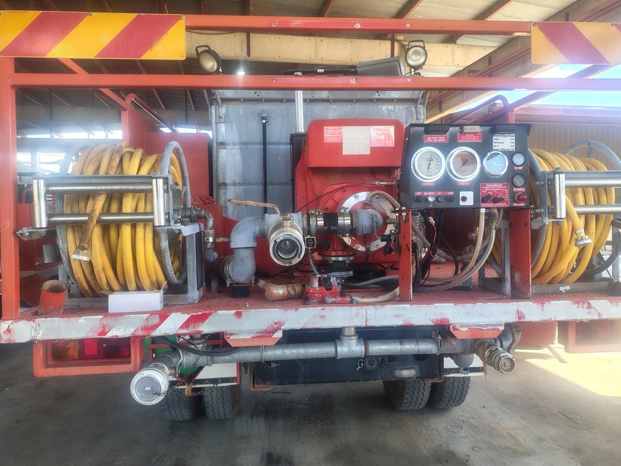 2001 Hino GT 4x4 Dual Cab Fire Truck, direct from NSW Rural Fire Service, 7 seats, 6 speed manual. Fully equipped Firetruck, and fitted with a Hatz Diesel pumpset with a Gaam pump and foam application.