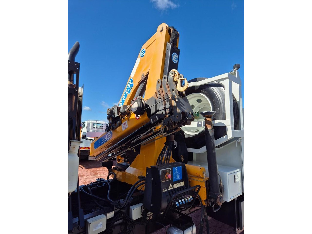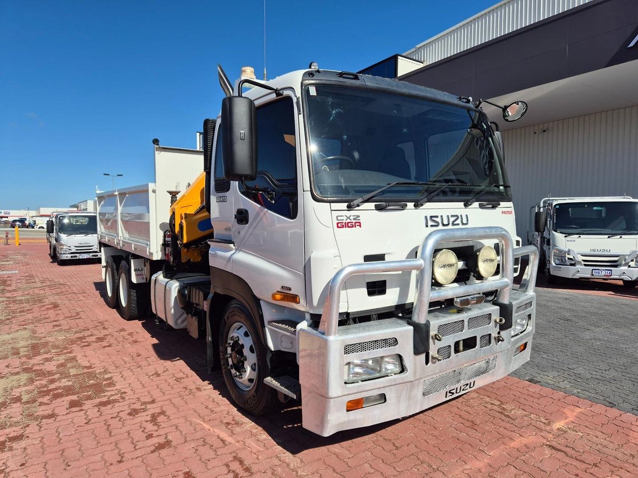 Ex Government Low Low Klm ISUZU GIGA CXZ415 AUTO Tipper and Crane Combo, 415HP Powerplant coupled to a 12 Speed Automated Transmission, fitted with 4.5m Drop Side Tipper Body with a Bartlett Ball Towbar, with Air to Rear, Reverse Camera. Bullbar, UHF Radio, Underbody Toll Boxes, Amber Beacons and complete with a Remote Controlled EFFER 100/4S Crane and will impress!