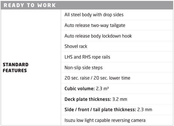 The Tipper body inclusions are: