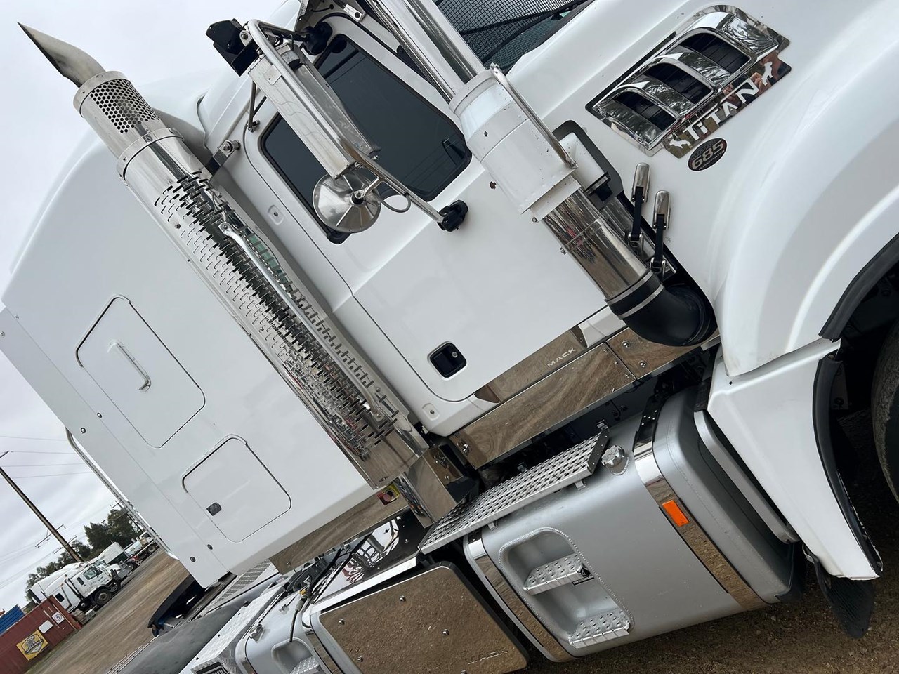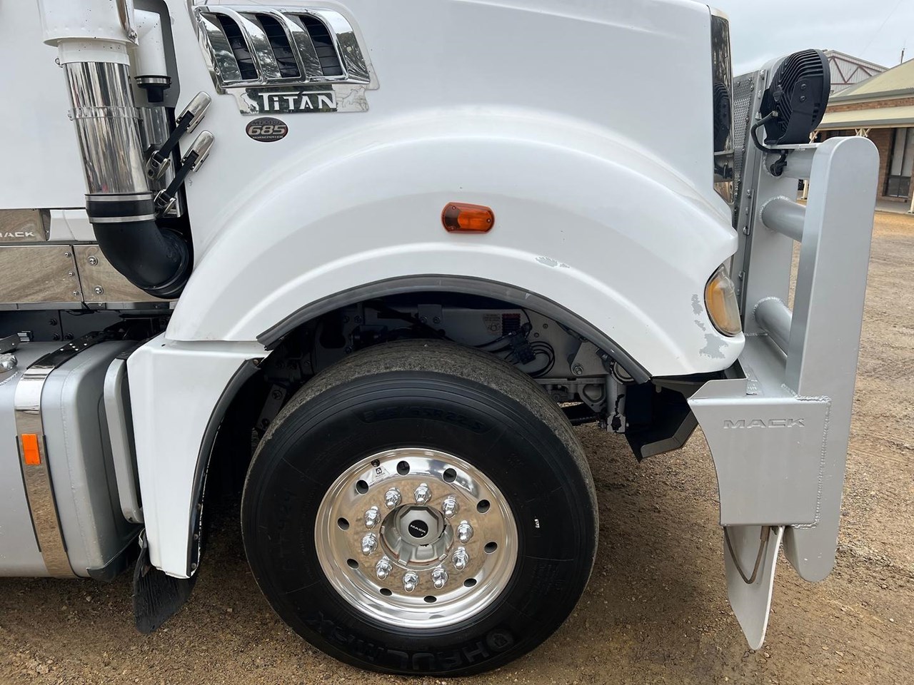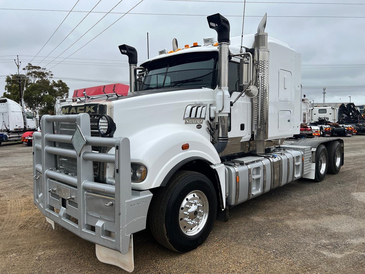 2019 Mack Titan 6x4 prime mover,685 hp 16 ltr Mack MP10 engine with 12 spd MDrive trans,Dana D52-185 rear axles on Neway air bag susp,Alloy wheels and painted FUPS bull bar,Super singles on steer,64" mid roof intergreated sleeper with Icepack-ES bunk air con,,Alloy walkplate,3.5" fixed QRTT,Dolly pull in rear with air and electric fittings,Rubber drive gaurds,Alloy water tank,Rotating beacons,Diff and rear axle x lock,Rad/cd,UHF,Stand up fridge,Microwave,Toolbox on LHS,Inverter,Fuel haul is a very tidy 160 ton rated late model truck.