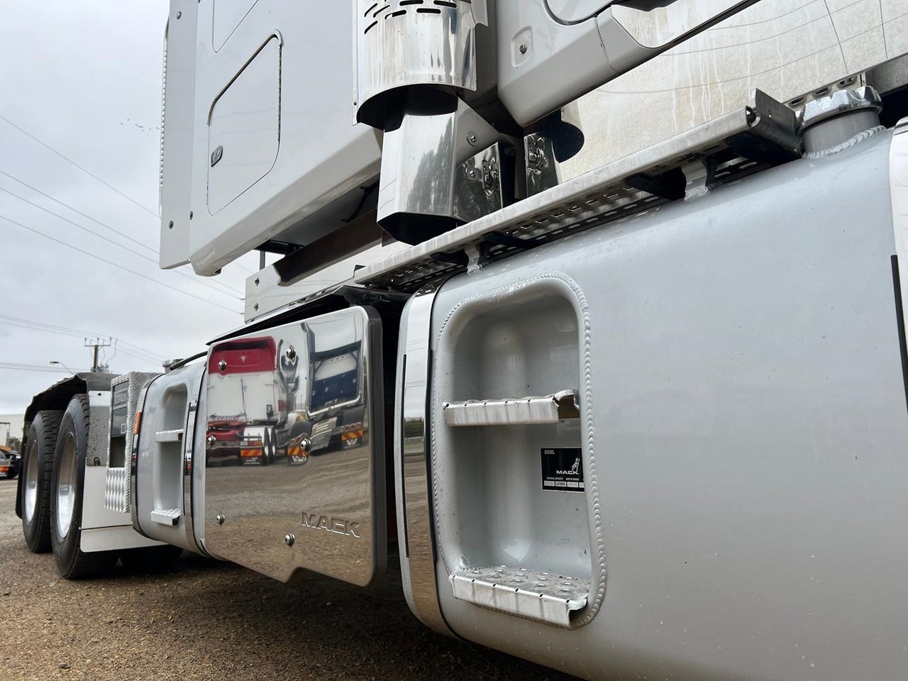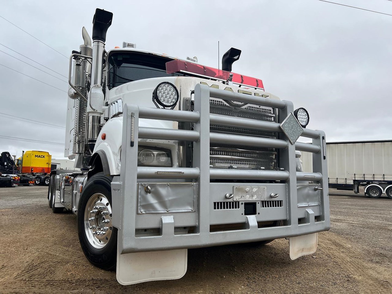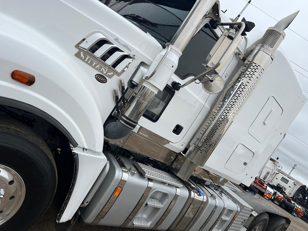2019 Mack Titan 6x4 prime mover,685 hp 16 ltr Mack MP10 engine with 12 spd MDrive trans,Dana D52-185 rear axles on Neway air bag susp,Alloy wheels and painted FUPS bull bar,Super singles on steer,64" mid roof intergreated sleeper with Icepack-ES bunk air con,,Alloy walkplate,3.5" fixed QRTT,Dolly pull in rear with air and electric fittings,Rubber drive gaurds,Alloy water tank,Rotating beacons,Diff and rear axle x lock,Rad/cd,UHF,Stand up fridge,Microwave,Toolbox on LHS,Inverter,Fuel haul is a very tidy 160 ton rated late model truck.