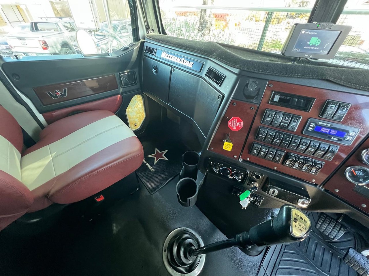 Detroit DD15 @ 560hp, 18 Speed Manual (RTLO20918B) Gearbox, Meritor RT46-160GP Rear Axles @ 4.3:1 Ratio with Front & Rear Crosslocks on Airliner AL46K Airbag Suspension, Alloy Wheels with Offsets to the Steer, Rubber Rear Guards, 2" Jost Sliding QRTT, 54" Stratosphere Sleeper with Ecowind Bunk Cooler, 2 x Rotating Beacon Lights, Quad Alloy Fuel Tanks with 1705 Litre Capacity, Alloy FUPS Bumper Bar, Auto Greaser, Draw Fridge, 2 x UHF, CD/Radio, Tidy Truck with 106 Tonne B Double/Road Train GCM.