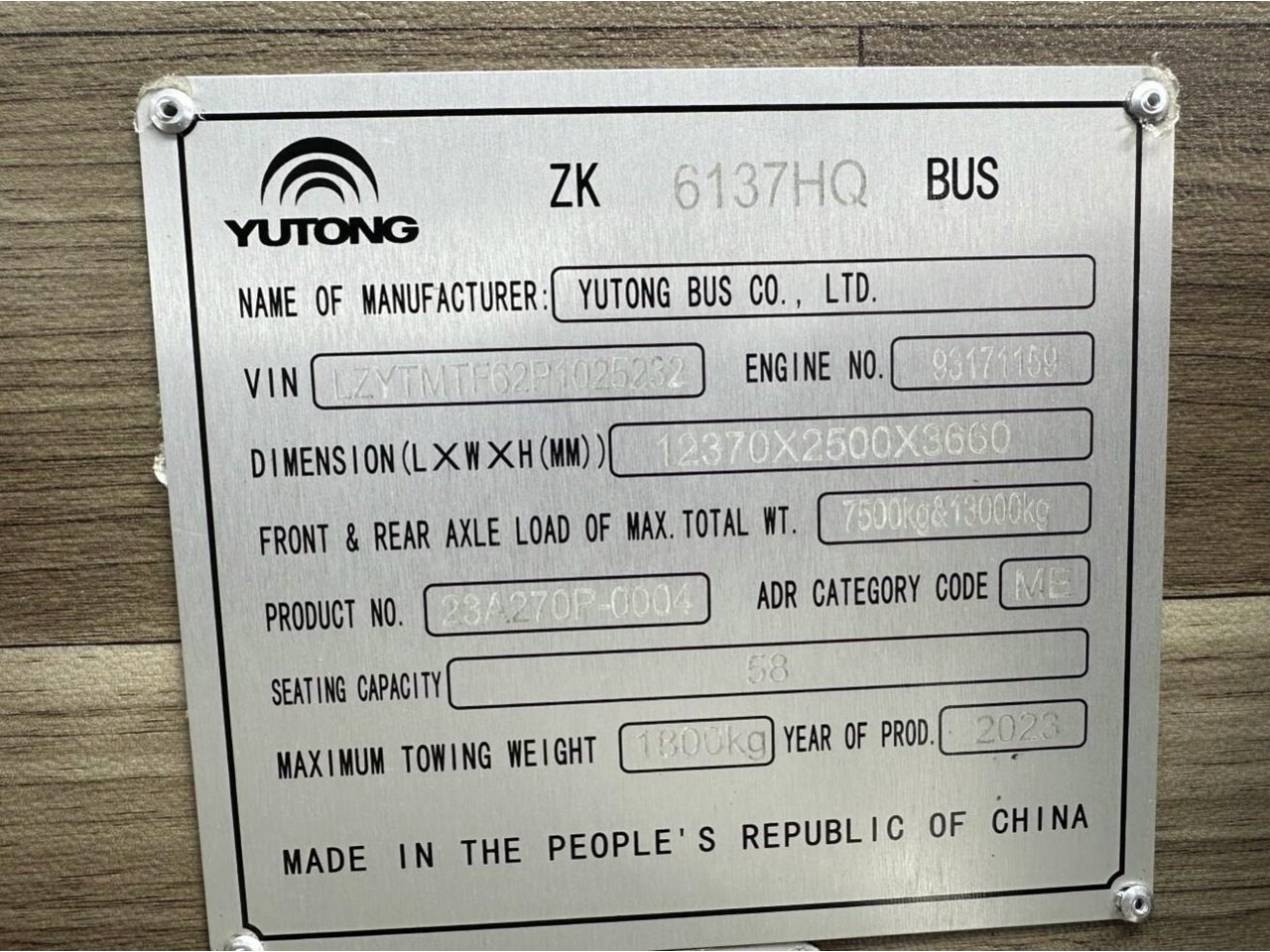 | Make | YUTONG |